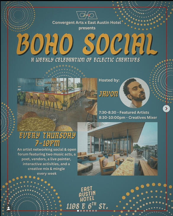 In Partnership with Convergent Arts and East Austin Hotel, we curated a third space for creatives, local vendors and communities to coexist together. Live Music, Drink Special and Positive Energy making this great weekly programming